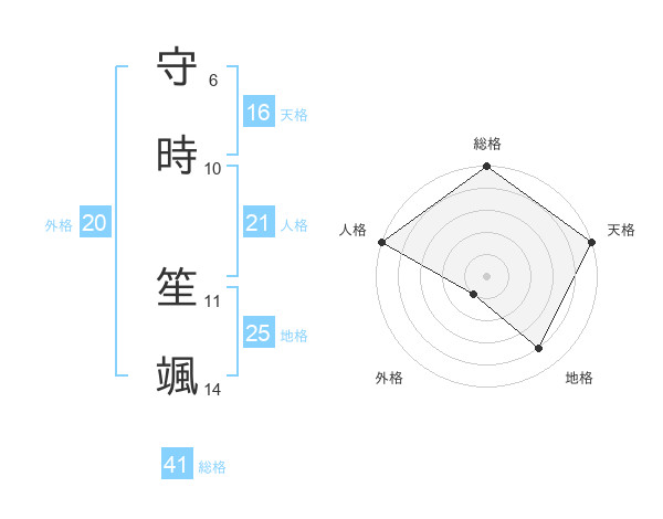 守時 笙颯さんの天格は16画の5点!