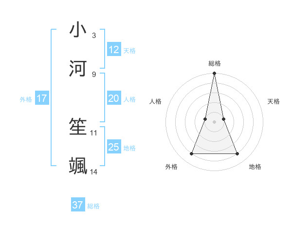 小河 笙颯さんの総格は37画の5点!