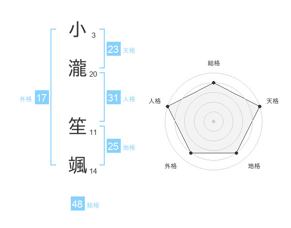 小瀧 笙颯さんを姓名の画数から五運を鑑定