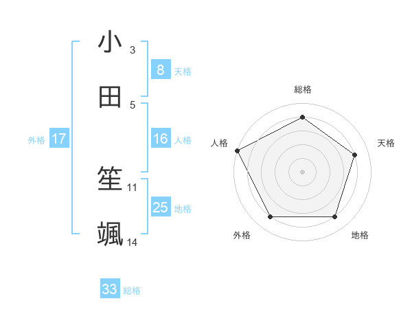 小田 笙颯さんを姓名の画数から五運を鑑定