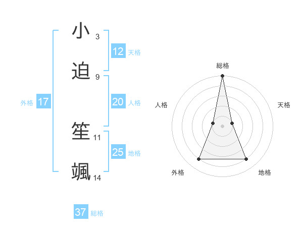 小迫 笙颯さんを姓名の画数から五運を鑑定