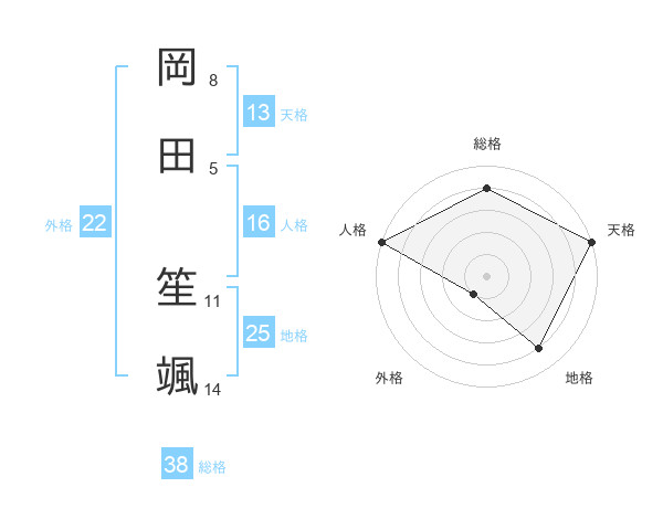 岡田 笙颯さんの総格は38画の4点!