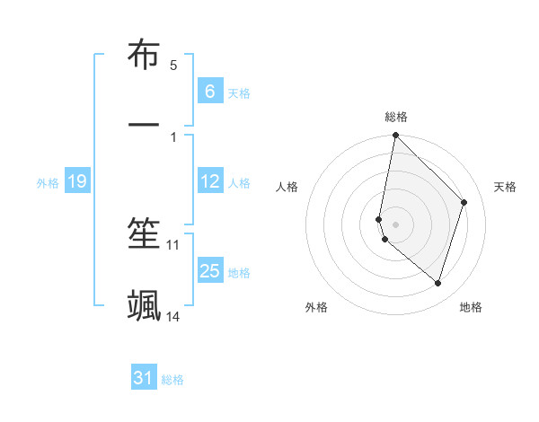 布一 笙颯さんを姓名の画数から五運を鑑定