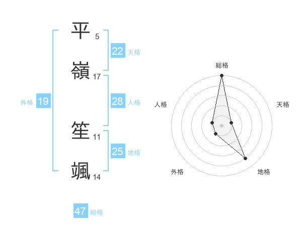 平嶺 笙颯さんの総格は47画の5点!