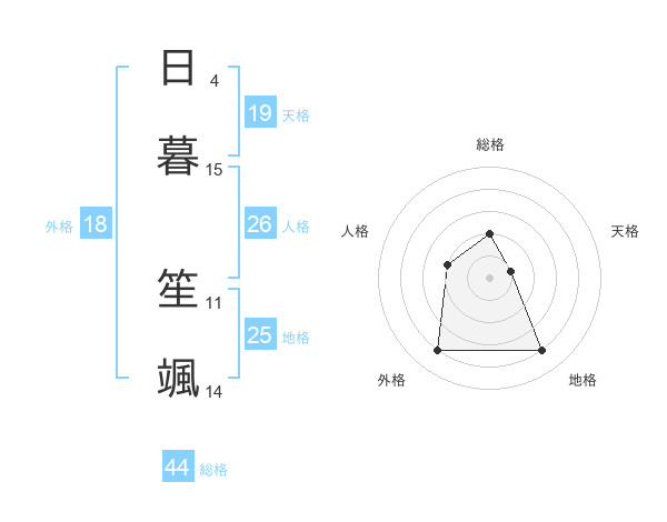 日暮 笙颯さんの総格は44画の2点!