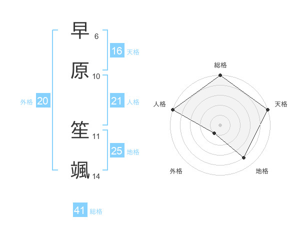 早原 笙颯さんを姓名の画数から五運を鑑定