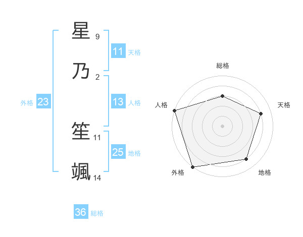 星乃 笙颯さんの総格は36画の3点!