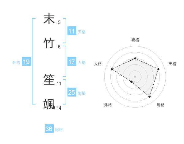 末竹 笙颯さんの天格は11画の4点!