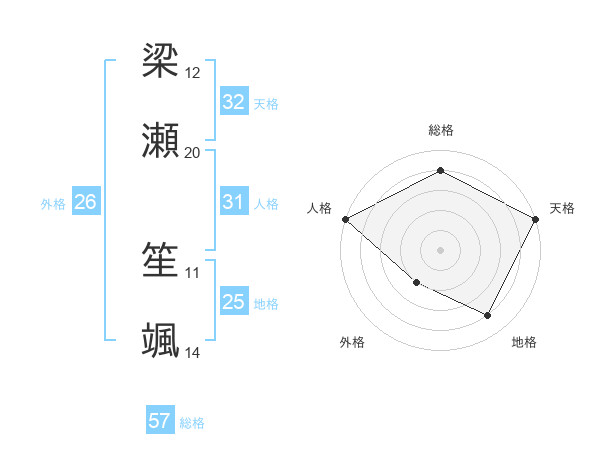 梁瀬 笙颯さんの天格は32画の5点!