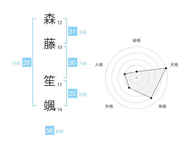 森藤 笙颯さんの天格は31画の5点!