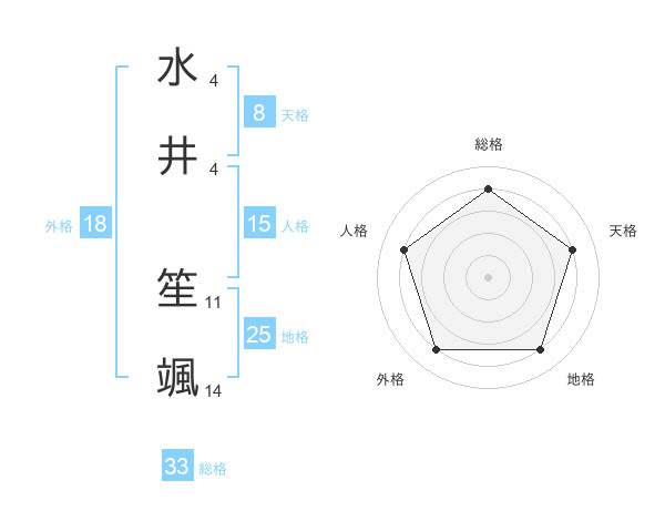 水井 笙颯さんの総格は33画の4点!
