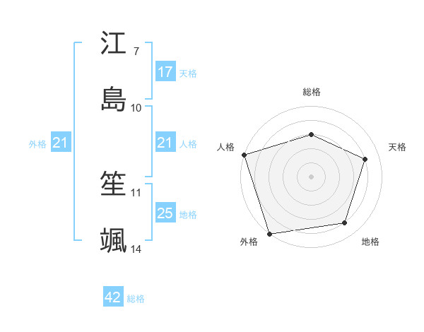 江島 笙颯さんの外格は21画の5点!