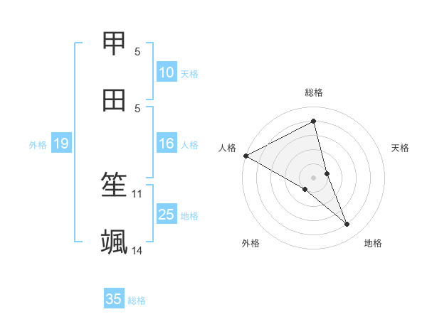 甲田 笙颯さんの総格は35画の4点!
