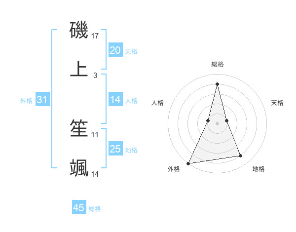 磯上 笙颯さんの外格は31画の5点!