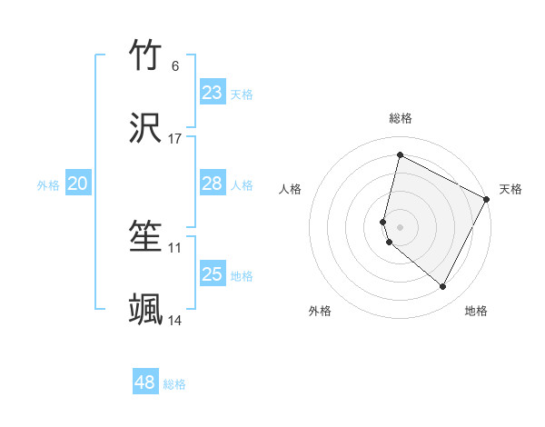 竹沢 笙颯さんを姓名の画数から五運を鑑定