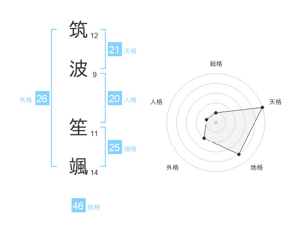 筑波 笙颯さんの天格は21画の5点!