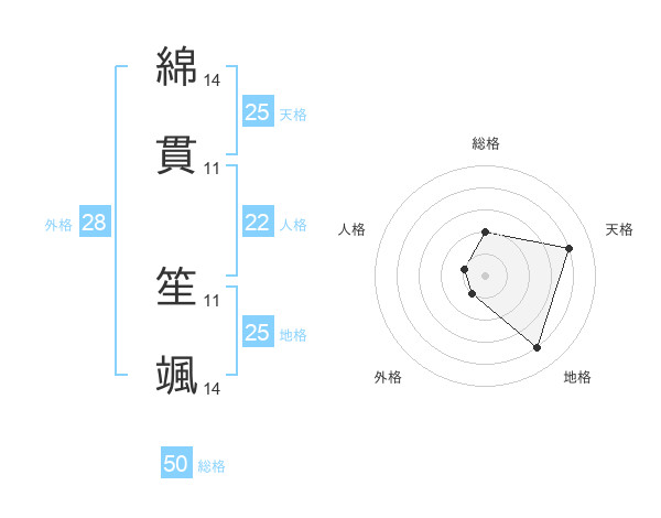 綿貫 笙颯さんを姓名の画数から五運を鑑定