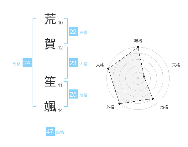 荒賀 笙颯さんを姓名の画数から五運を鑑定