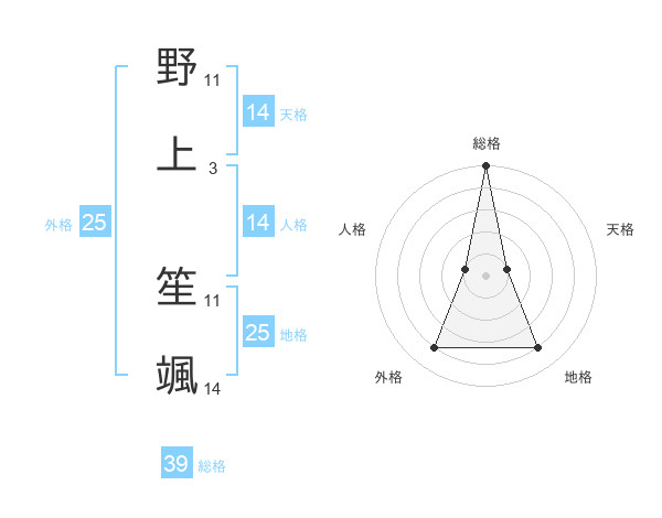 野上 笙颯さんの総格は39画の5点!