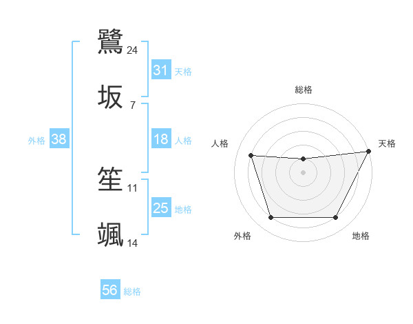 鷺坂 笙颯さんの天格は31画の5点!