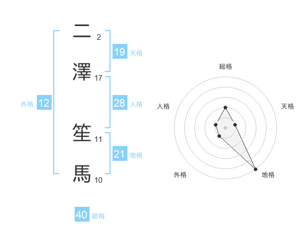 二澤 笙馬さんの総格は40画の2点!
