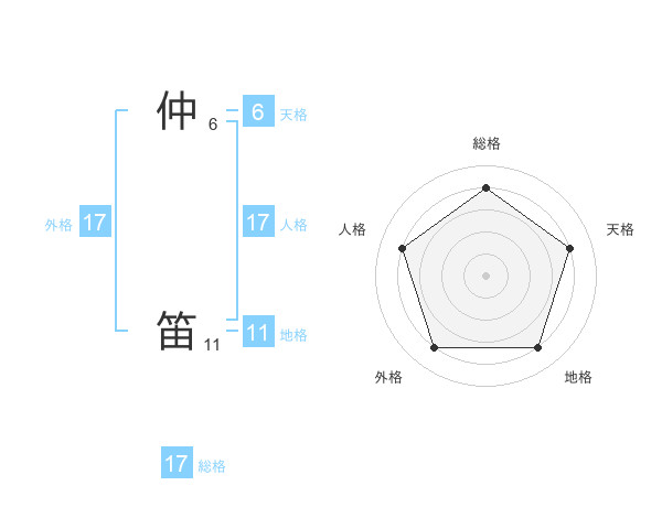 仲 笛さんの総格は17画の4点!