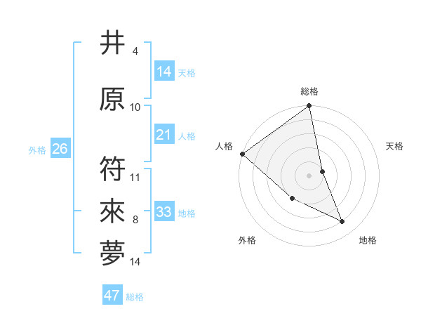 井原 符來夢さんを姓名の画数から五運を鑑定