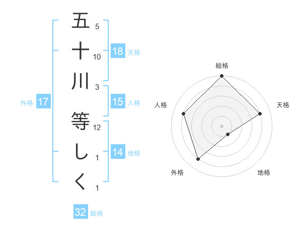 五十川 等しくさんを姓名の画数から五運を鑑定