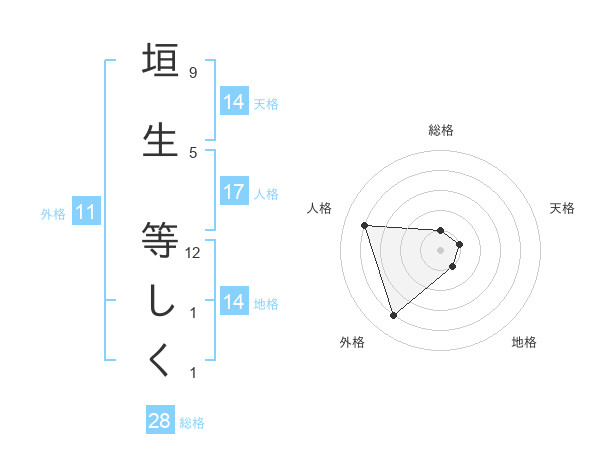 垣生 等しくさんを姓名の画数から五運を鑑定