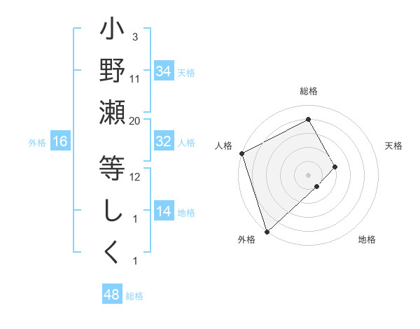 小野瀬 等しくさんの総格は48画の4点!