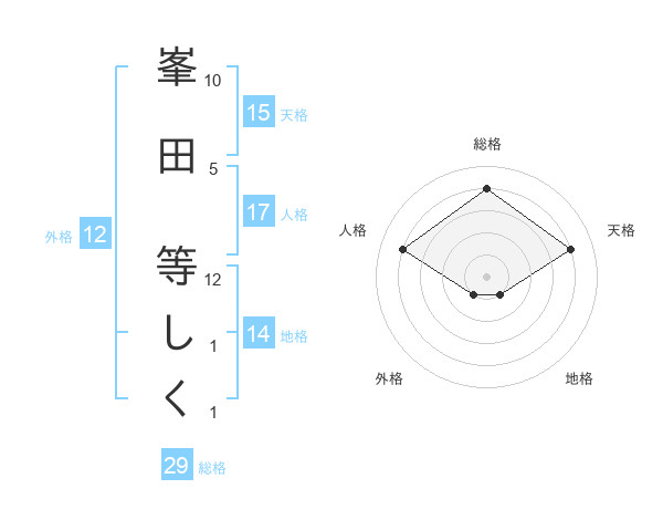 峯田 等しくさんを姓名の画数から五運を鑑定