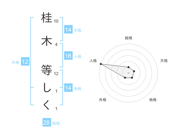 桂木 等しくさんを姓名の画数から五運を鑑定