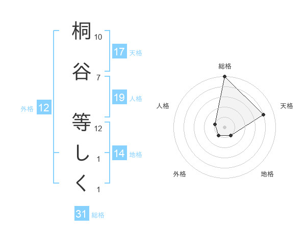 桐谷 等しくさんを姓名の画数から五運を鑑定