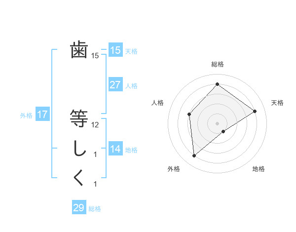 歯 等しくさんの総格は29画の4点!