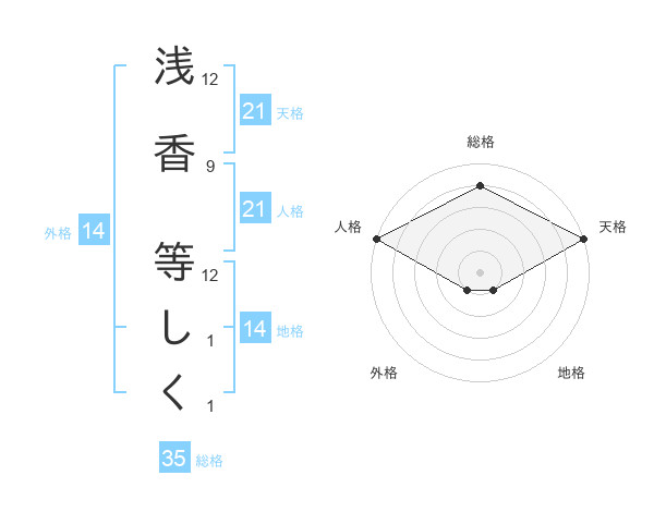 浅香 等しくさんを姓名の画数から五運を鑑定