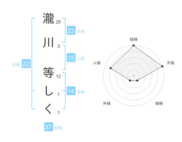 瀧川 等しくさんを姓名の画数から五運を鑑定