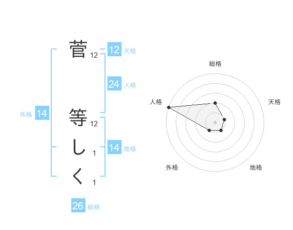 菅 等しくさんの天格は12画の1点!