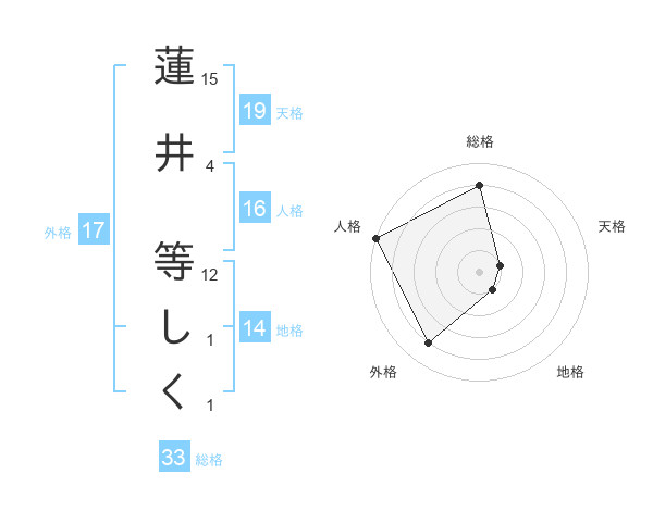 蓮井 等しくさんを姓名の画数から五運を鑑定