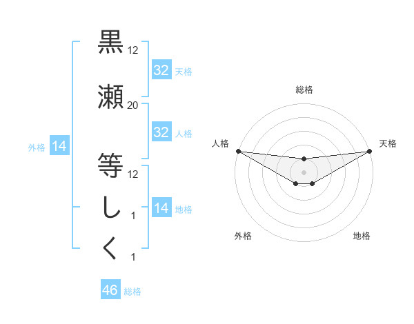 黒瀬 等しくさんの天格は32画の5点!