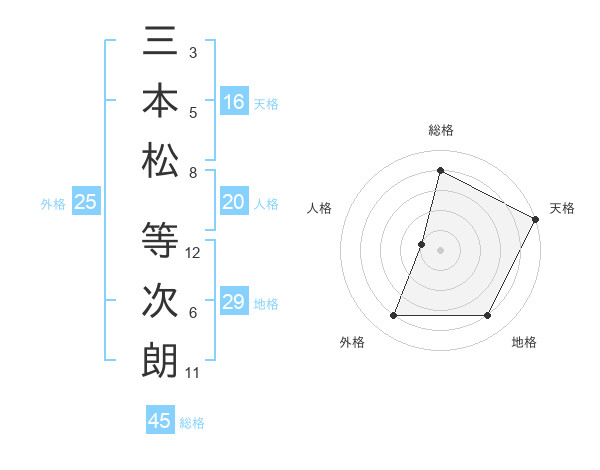 三本松 等次朗さんを姓名の画数から五運を鑑定