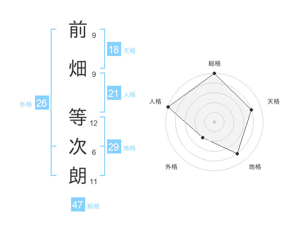 前畑 等次朗さんを姓名の画数から五運を鑑定