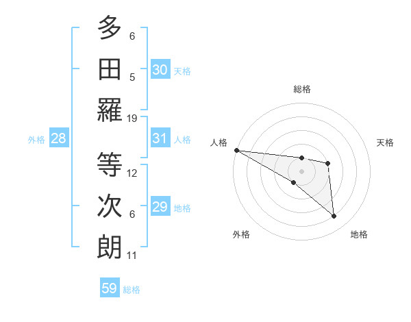 多田羅 等次朗さんを姓名の画数から五運を鑑定