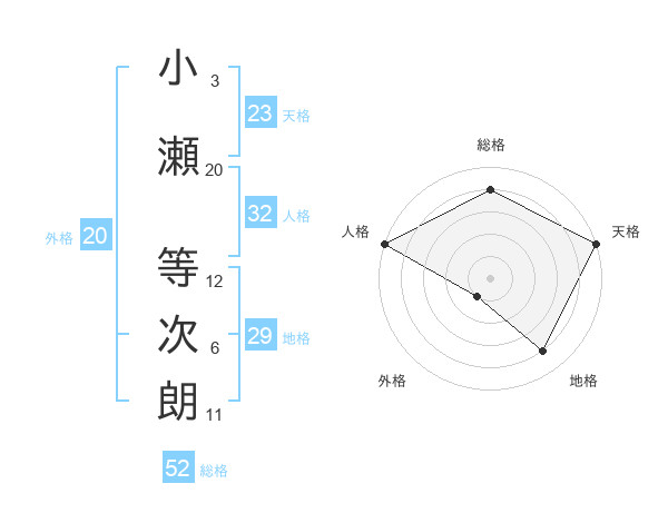 小瀬 等次朗さんを姓名の画数から五運を鑑定