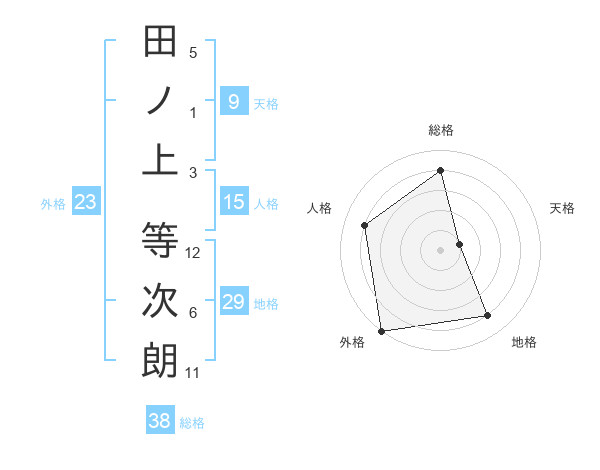 田ノ上 等次朗さんを姓名の画数から五運を鑑定