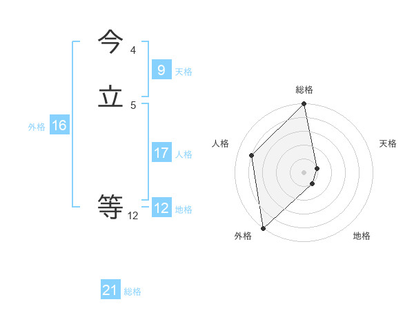 今立 等さんの総格は21画の5点!