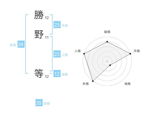 勝野 等さんの天格は23画の5点!