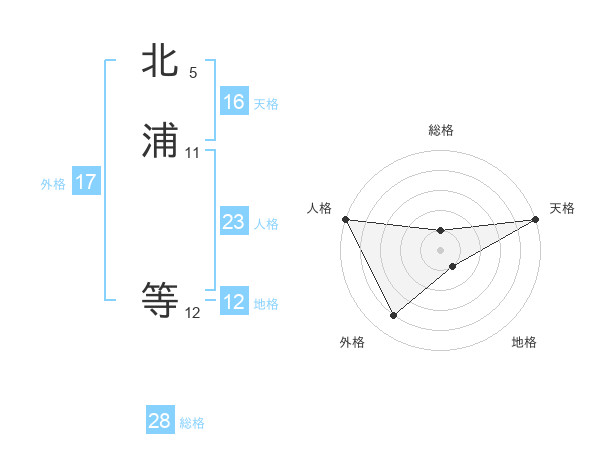 北浦 等さんの人格は23画の5点!