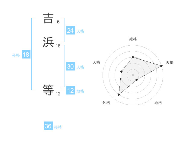 吉浜 等さんの天格は24画の5点!