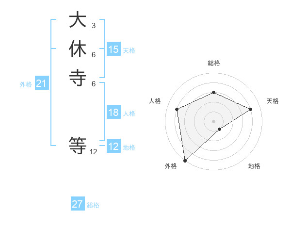 大休寺 等さんの外格は21画の5点!