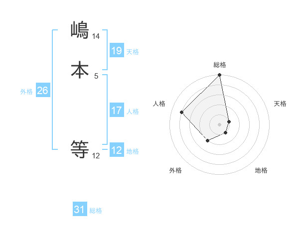 嶋本 等さんの総格は31画の5点!